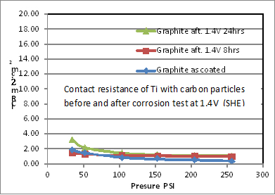Currently, DuraC is being demonstrated on titanium metal electrodes used in flow batteries for long-duration energy storage. TreadStone's DuraC coating is a thin layer of carbon particles (20-50 ?m thick) used on the metal component surfaces where the carbon particles are bonded to the metal surface. The carbon particles serve as electrical contact points that achieve low electrical contact resistance. Test data indicates the DuraC coating can meet the performance requirements for flow battery applications. Long-term durability studies are underway.